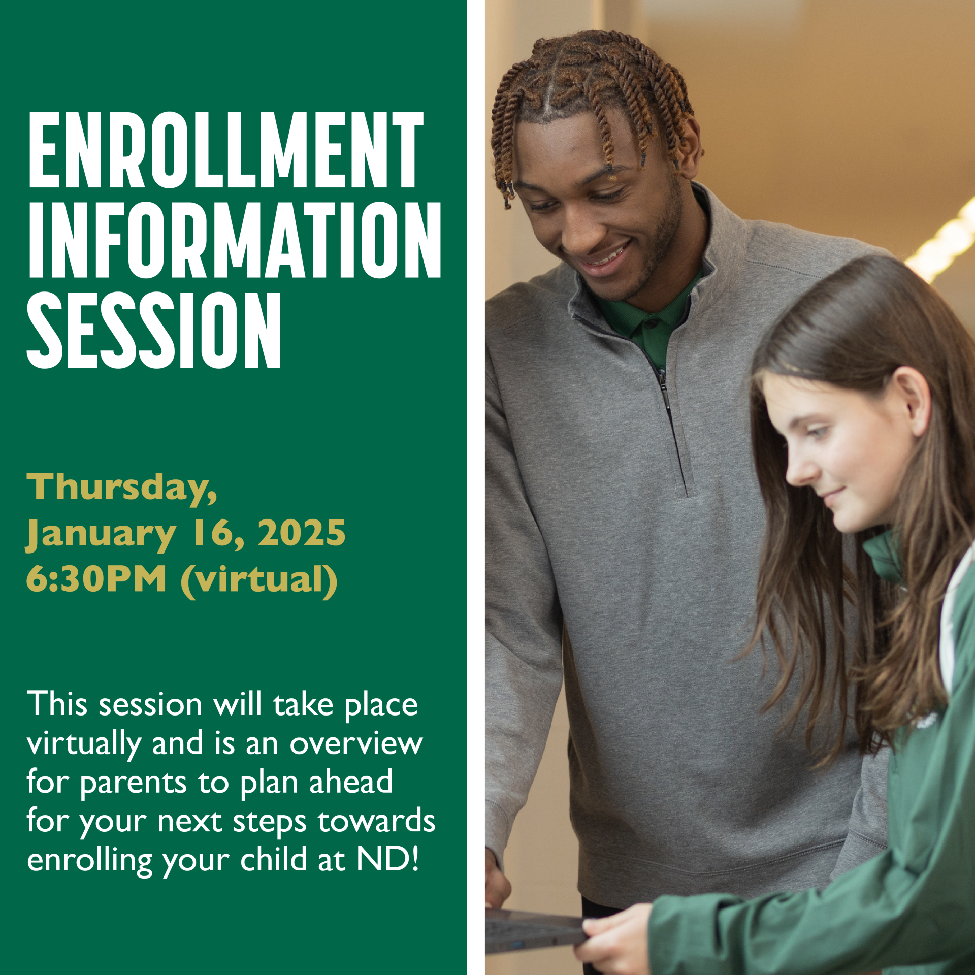 Parents are encouraged to attend our Virtual Enrollment Information Session on January 16. During this online session we will review the logistic details that will be important for you and your family to consider as you make your enrollment decision. Topics that we will cover include: the enrollment process, payment plans, transportation, the daily schedule, the freshman course registration process, placement exams and more. Please bring your questions!