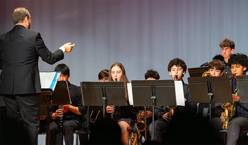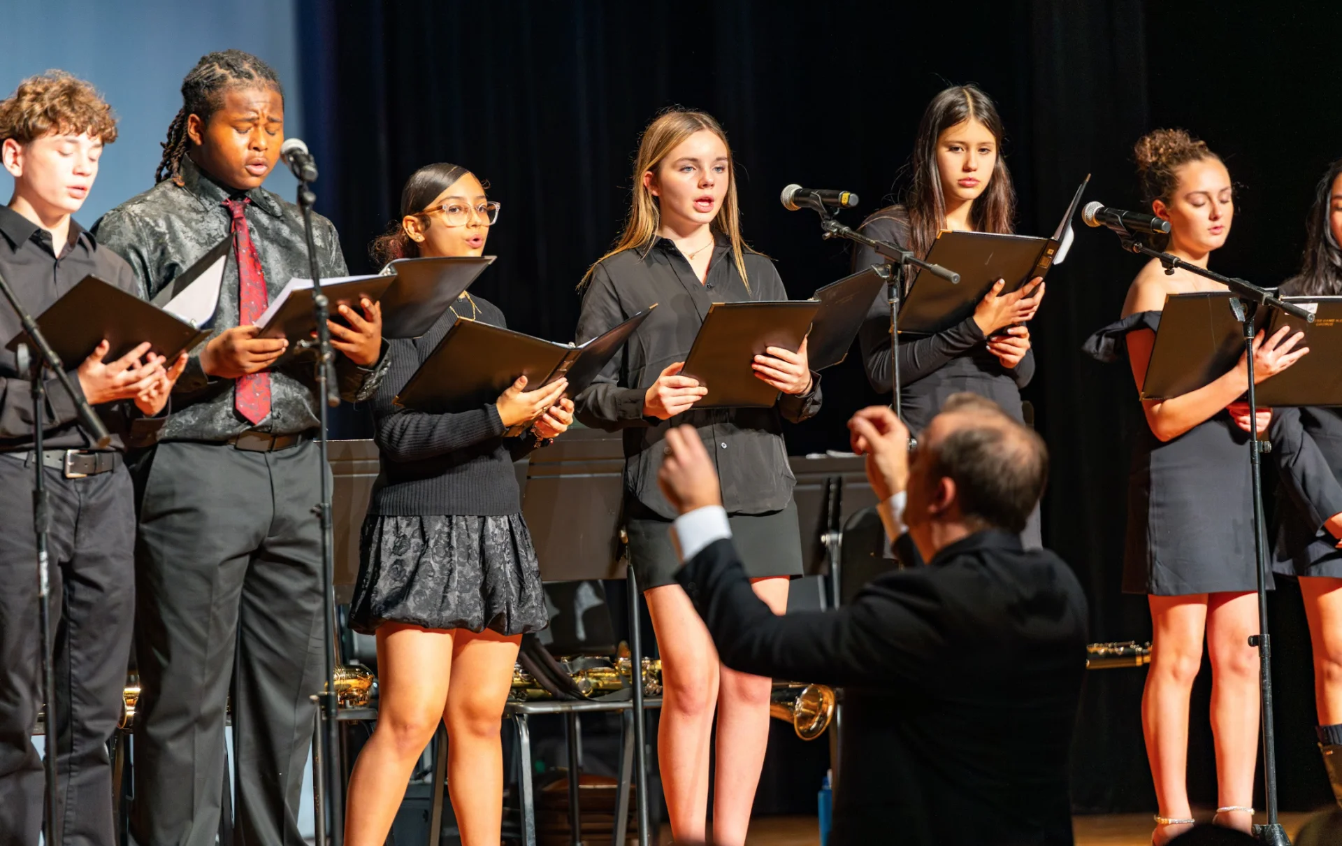 The Notre Dame Music Department, under the direction of new faculty member Jonathan Bean, put on a cheerful and heartfelt performance on December 11th. This event featured the Concert Band, Pep Band, Drumline, and Chorus. Also featured were solo and duet performances by Eric Robinson '28, Alison Maloney '29 and Valentina Quijano '29, Marco Blakeslee '26, and Liam Paul '28. Collins Auditorium had a feeling of true holiday cheer as a packed house of fully engaged audience members celebrated the season.