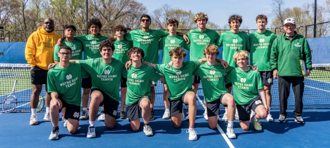 Besides doing well in competition, the highlight of the Spring Crew season was the acquisition of a boat that is proudly identified as Notre Dame’s! Senior Crew Members David Alberino, Ryan Bereski, Roman Hescock, Sean Mismas, and Yahir Ramos were up early the morning after Graduation to participate in their Senior Morning at the Beacon Point Regatta where the new boat was unveiled!