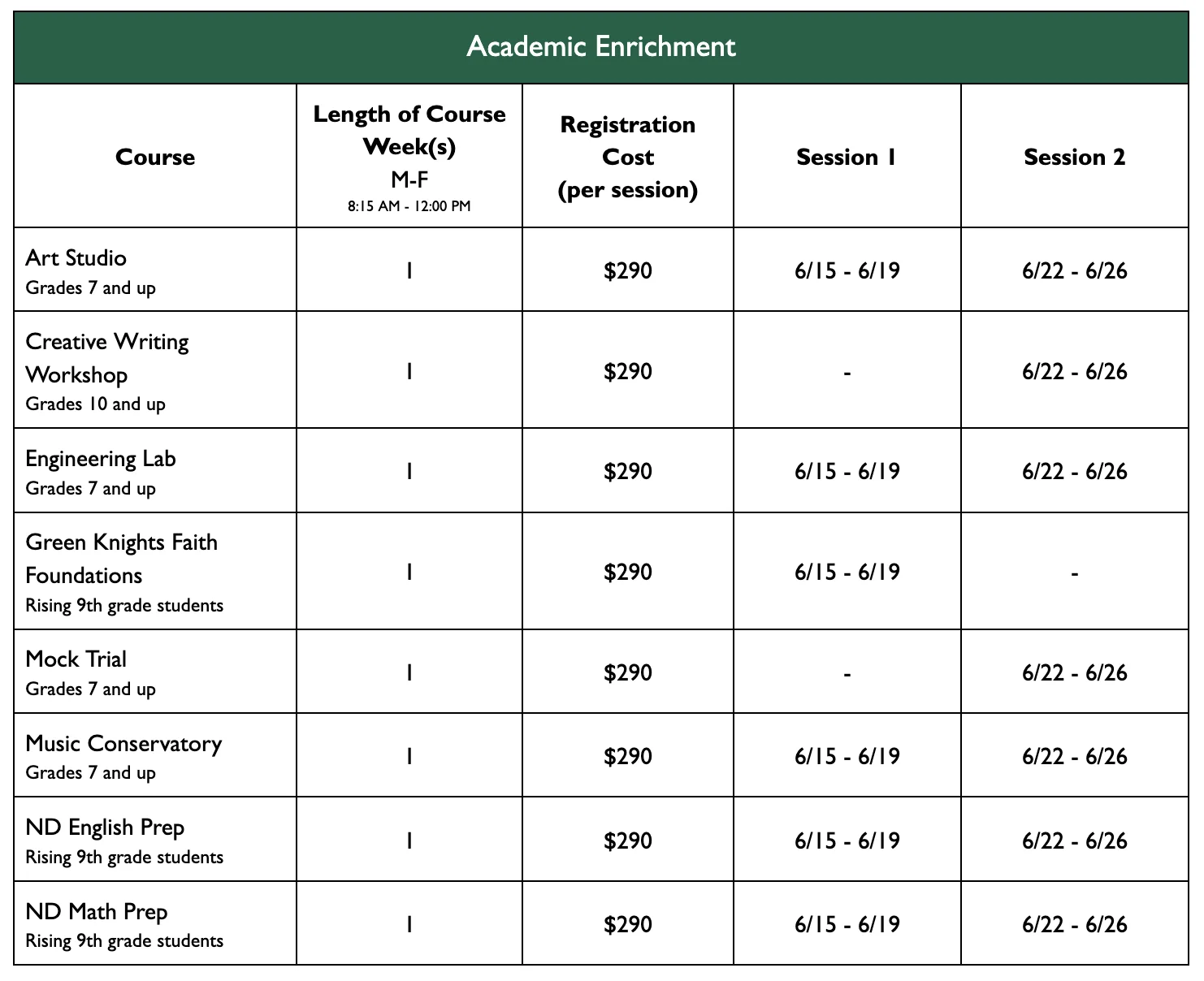 - Refund Policy: Families are eligible for a 50% refund before June 15. No refunds will be issued after June 15, once the program has begun.