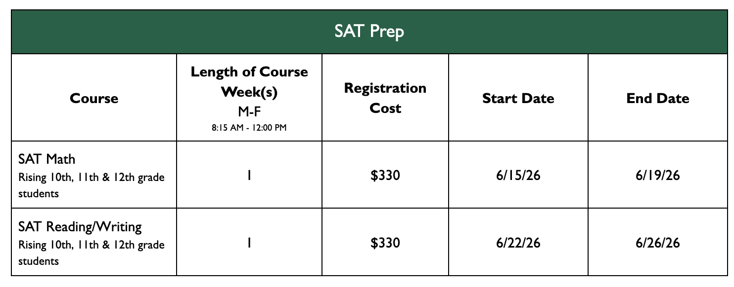 Students must be registered for the course(s) they wish to take by completing the Summer Programs Registration Form. Registration runs from Saturday, March 14, through Sunday, June 14, 2026.